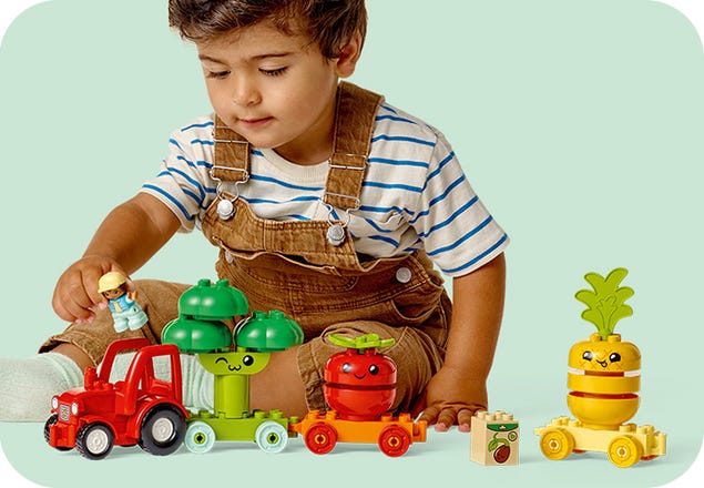 LEGO® DUPLO® Mans pirmais augļu un dārzeņu traktors (10982) piedāvā daudz jautru veidu, kā vairot mazuļu mācīšanās prieku.