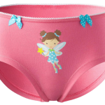 Meiteņu biksītes- šorti ar fejas apdruku, izgatavotas no mīksta elastīga kokvilnas auduma. Jostasvietā ērta gumija, ar mežģīņu maliņu. Priekšpusi rotā 2 bantītes.