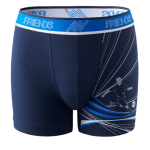Zēnu bokseršorti ar efektīgu maskēšanās – kamuflāža rakstu zilā tonī, no mīksta, elastīga kokvilnas auduma. Jostasvietā mīksta gumija, ar logotipu.